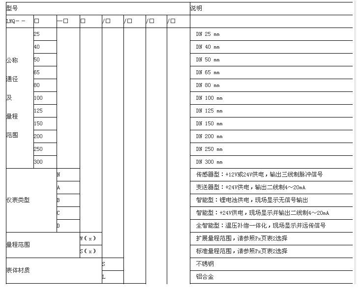 用戶(hù)在選型時(shí),應(yīng)根據(jù)管道公稱(chēng)壓力、介質(zhì)較高壓力、介質(zhì)溫度、介質(zhì)組分情況、流量范圍及信號(hào)輸出要求合理選擇流量計(jì)的型號(hào)規(guī)格。